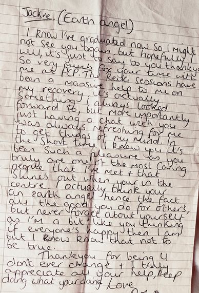 "I feel magical with thanks to Jackie. I went in feeling low in mood but left feeling so held and like a weight has been lifted. Alive, content and relaxed. I cannot wait for my next session!"